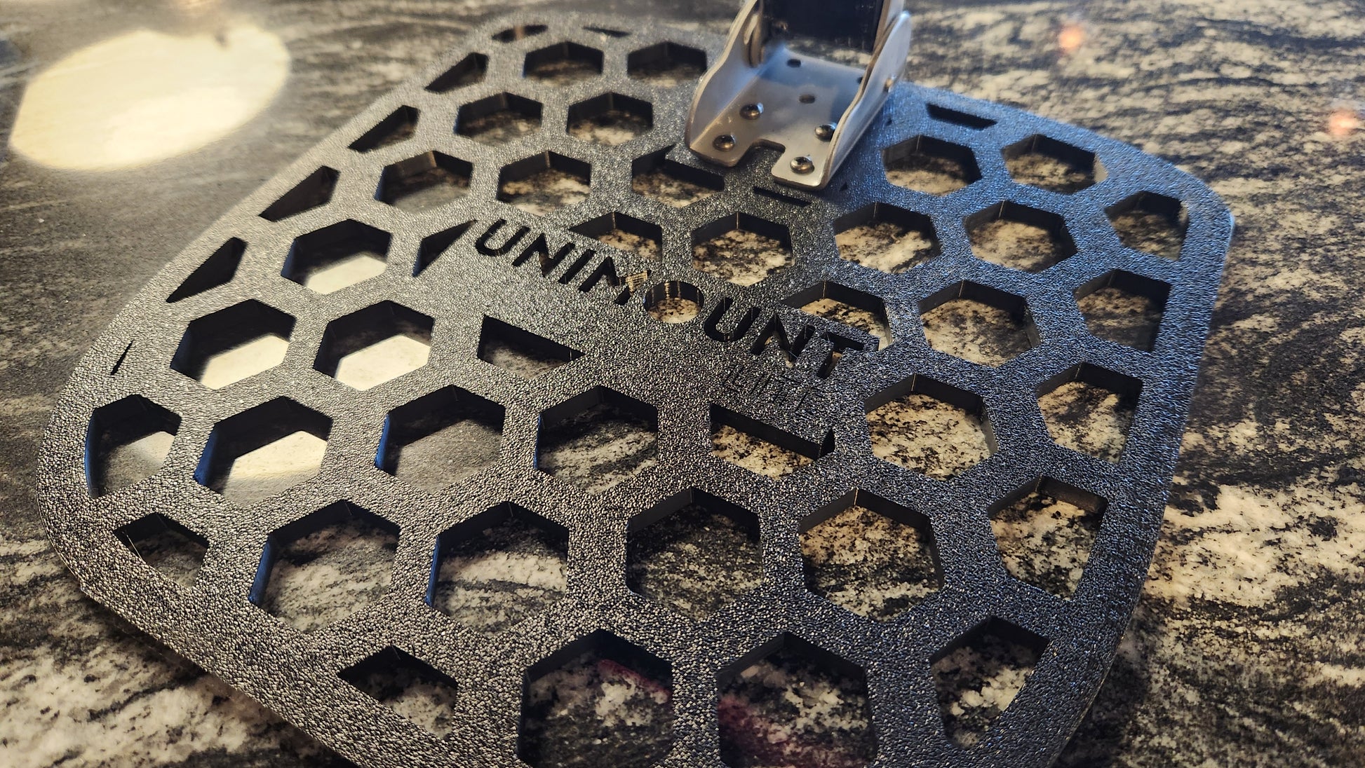 UNIMOUNT LITE gives you the ability to mount the portable monitor or tablet you already have above your laptop, without the bulk of the full sized UNIMOUNT frame.