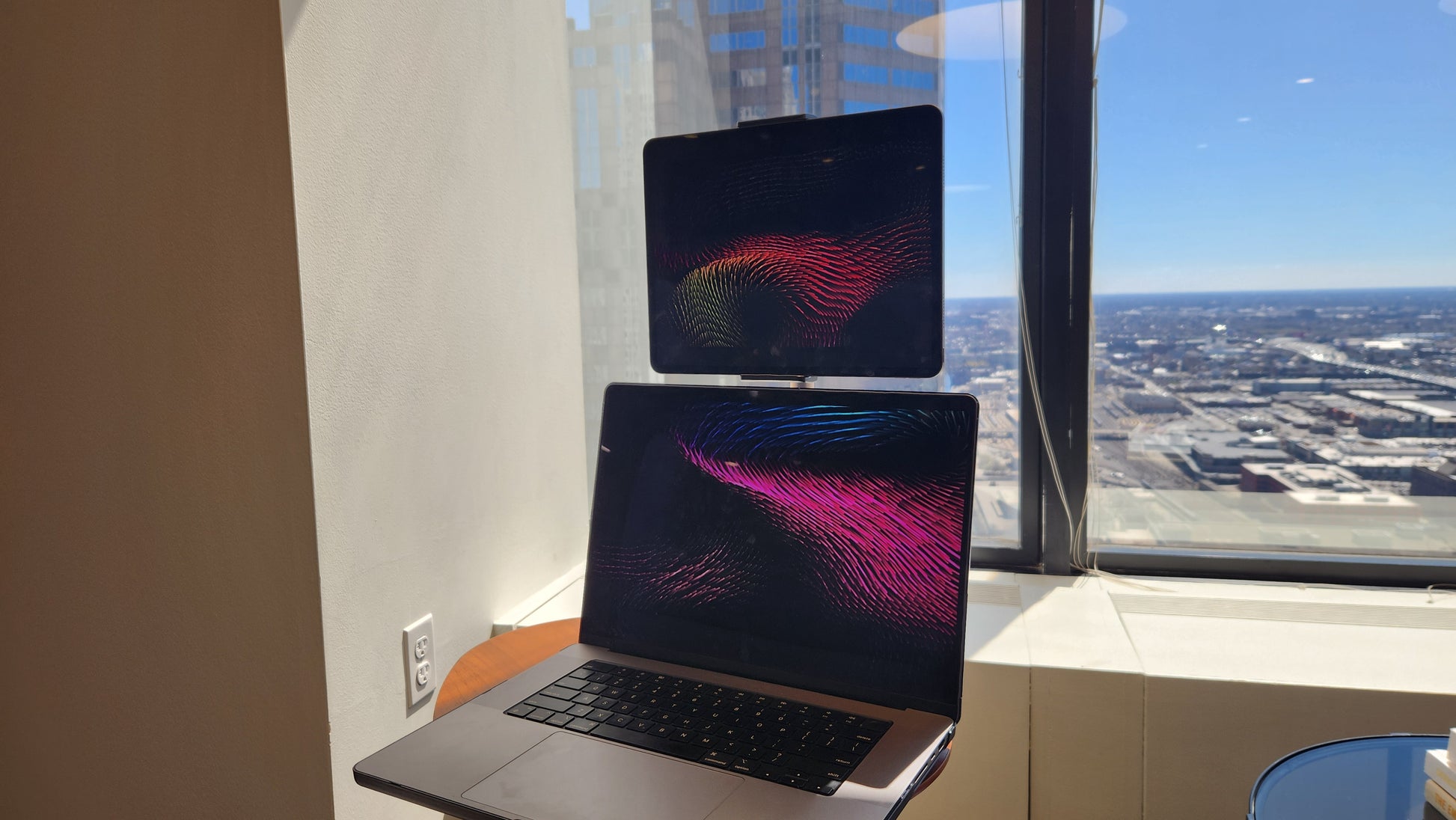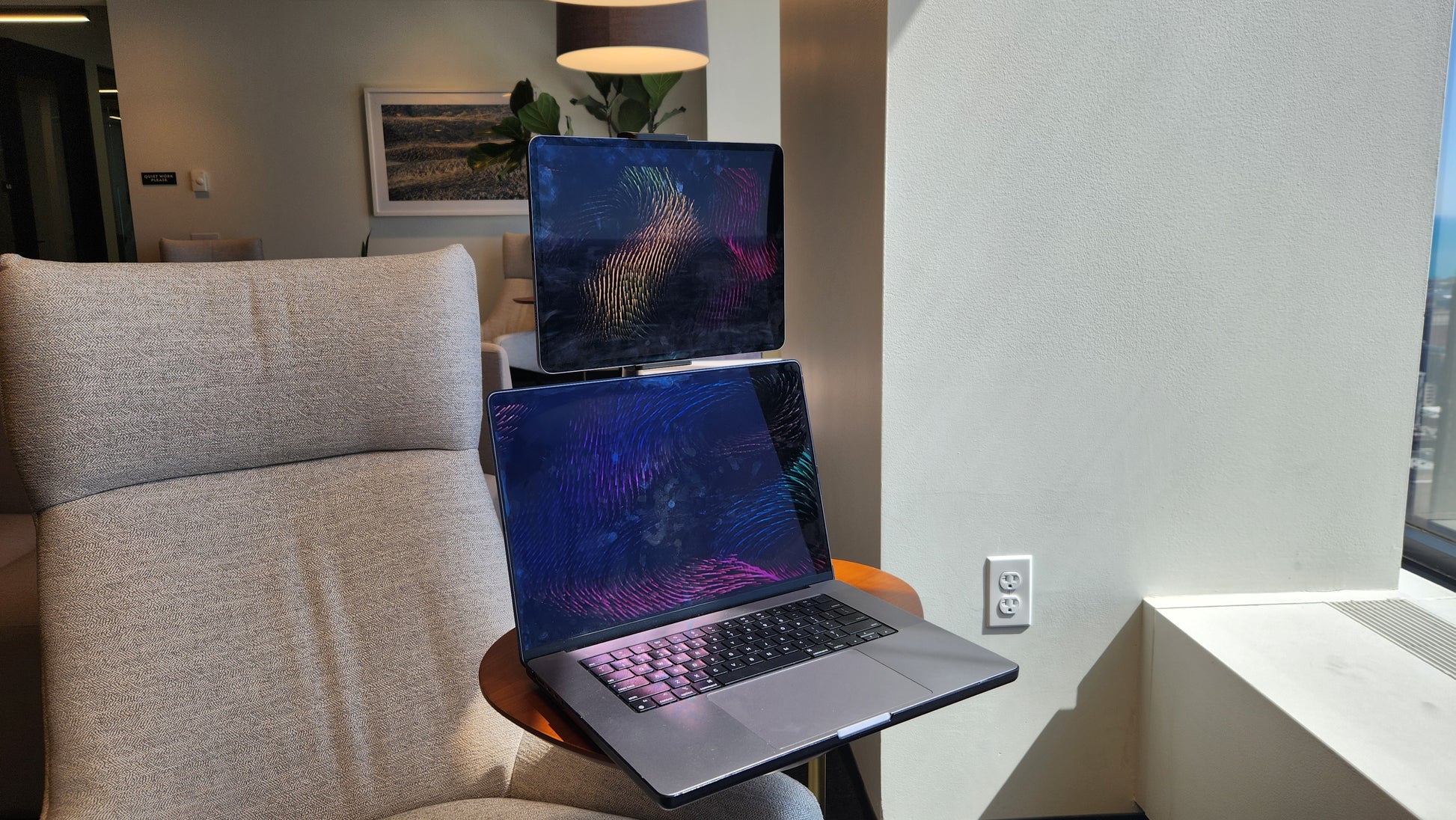 ⛰ Fits underneath laptop—no weight on laptop display or tablet screen